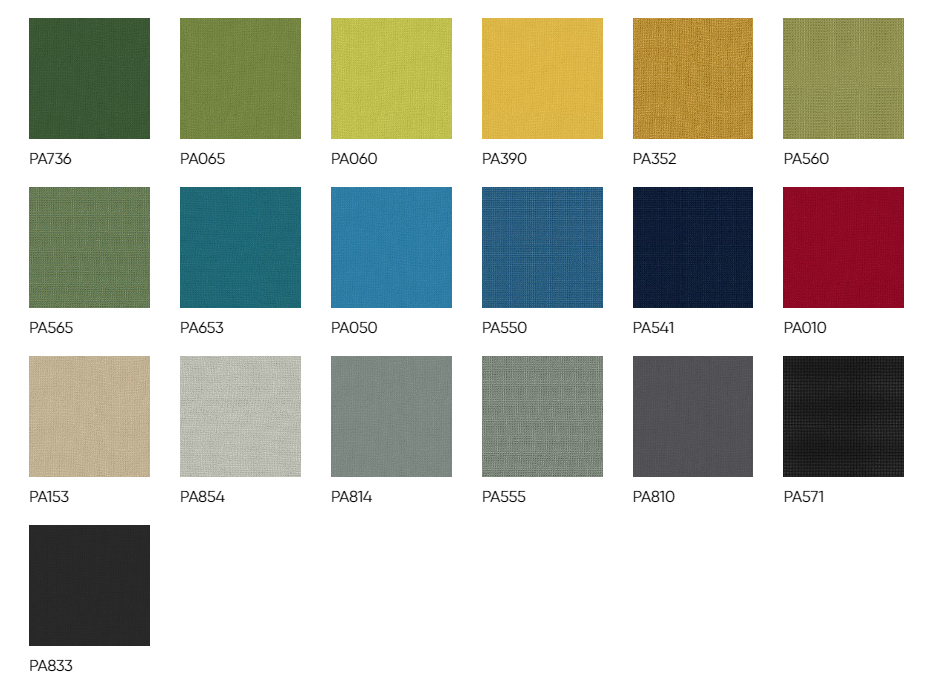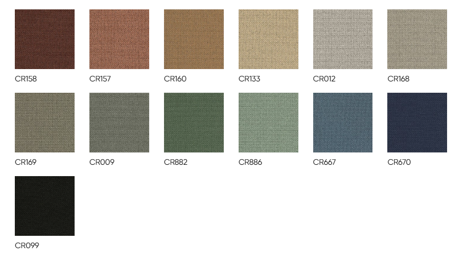 skład: 100 % poliester-TREVIRA CS, waga 250g/m2 +/-5%, odporność na ścieranie: 70 000 cykli Martindale, odporność na pilling: 5 (EN ISO 12945/2), odporność na światło: 6 (EN ISO 105-B02), odporność koloru na tarcie: mokro:4 (UNI EN ISO 105-X12) sucho:5 (UNI EN ISO 105-X12) atest trudnozapalności: EN 1021-1:2006 EN 1021-2:2006 BS 7176:2007 (Medium Hazard); BS 5852:2006 (Crib 5); NFP 92-501-1 (M1), DIN 4102-1 (B1), IMO Res. A 652 (16) Part 8 UNI 9174-UNI 8456 (C1), AM 18(NF D 60013) UNI 9175 Class 1 IM