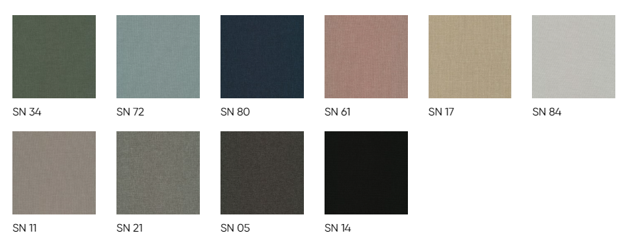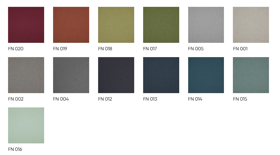 skład: 100% poliester, gęstość 245g/m2 ± 5%, odporność na ścieranie 70,000 cykli Martindale (BS EN ISO 12947-2:1999), pilling 4-5 (DIN EN ISO 12945/2:2000), odporność na światło 4 (EN ISO 105-B02:2013), certyfikat trudnopalności (DIN EN 1021-1)